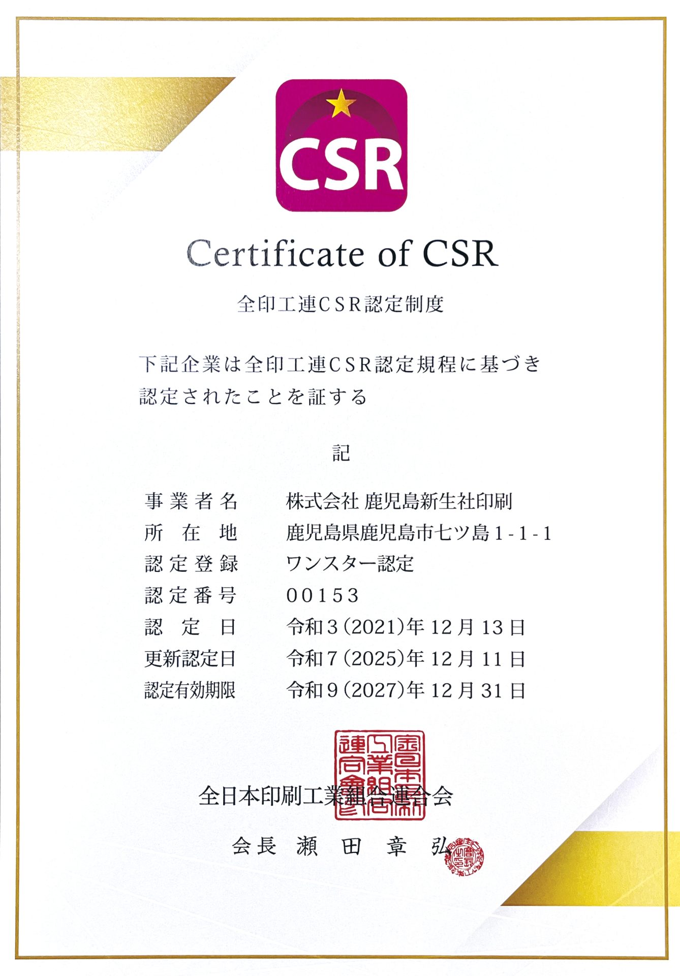※CSRワンスターとは、全日本印刷工業組合連合会が中小印刷業のCSRに関する取り組みを認定する制度です。詳細はコチラから
